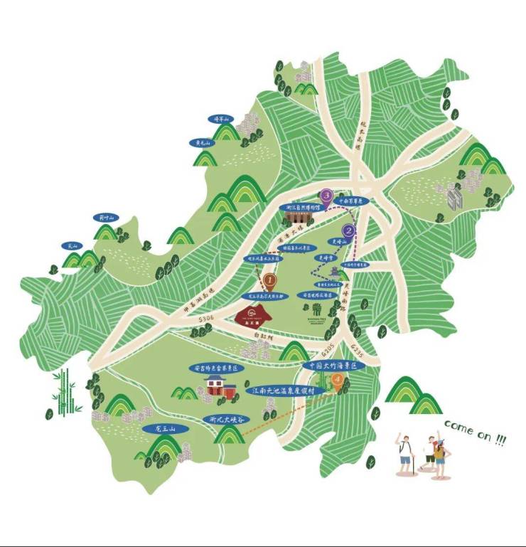 ◎ 自然探秘路线:龙王溪→中国竹子博览园→中南百草原→浙江自然博物馆