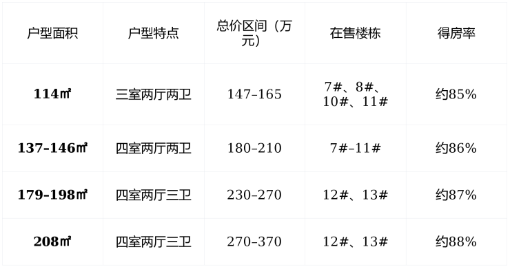 ✅ 温馨提示 :目前 114–146㎡主力户型 库存充足, 208㎡大平层 为稀缺资源,建议优先锁定南向带庭院房源。