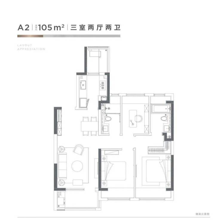 户型面积:105㎡、125㎡、135㎡、165㎡、220㎡