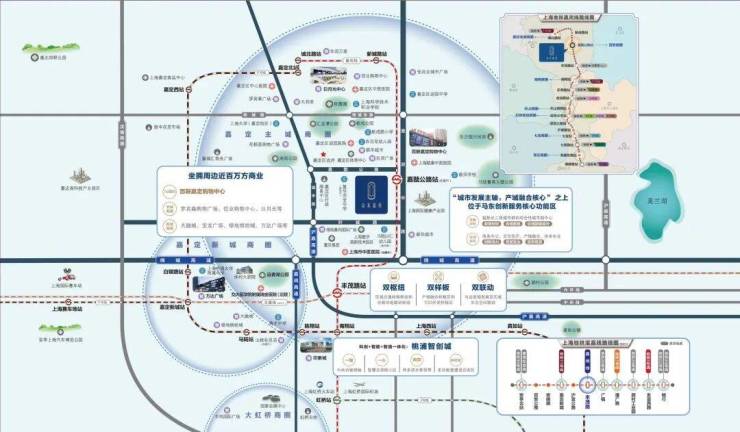 项目紧邻叶城路、嘉戬公路,1.2公里内接入S5沪嘉高速、G1503绕城高速,15分钟达中环,25分钟到虹桥机场。