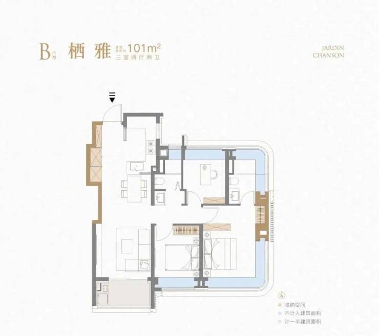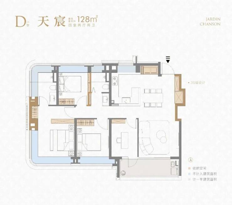 得房率约75%,全屋多飘窗设计,最大飘窗线长达23米,创新S墙结构提升收纳空间