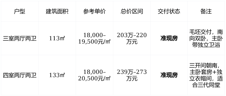 库存状态 :项目已进入尾盘阶段,部分楼栋所剩房源有限, 可现场看房、即签即住 ,无需等待2–3年交房。