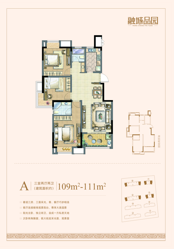 主力户型 :建面约 89–125㎡ ,涵盖三居与四居,满足刚需及刚改需求