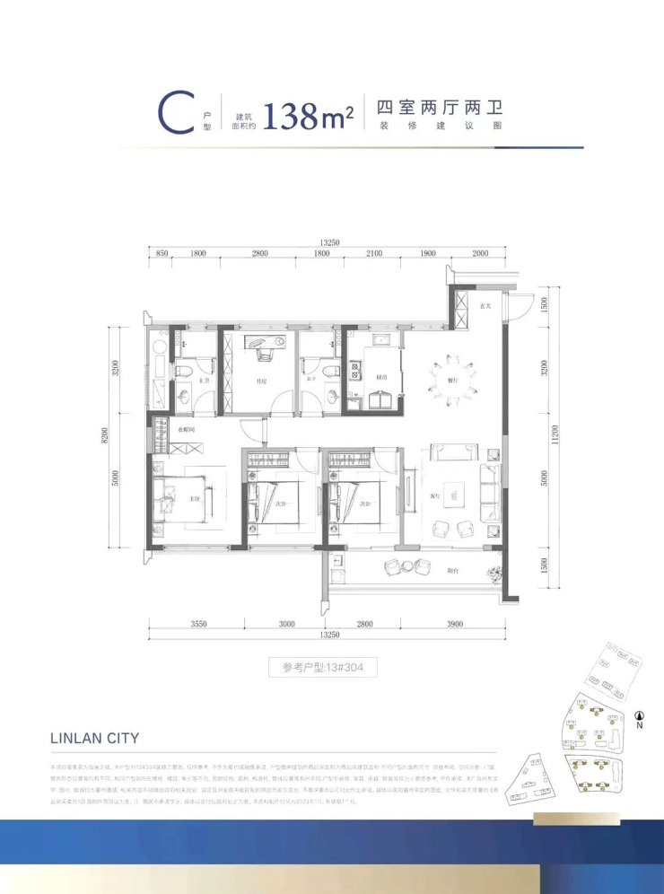主力户型:建面约98–138㎡,涵盖三房、四房,户型方正、南北通透