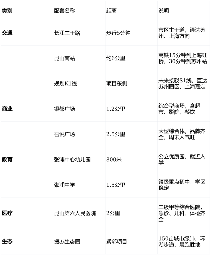 交通便利:紧邻长江主干路,距昆山南站6公里,未来K1线(接S1)东侧经过