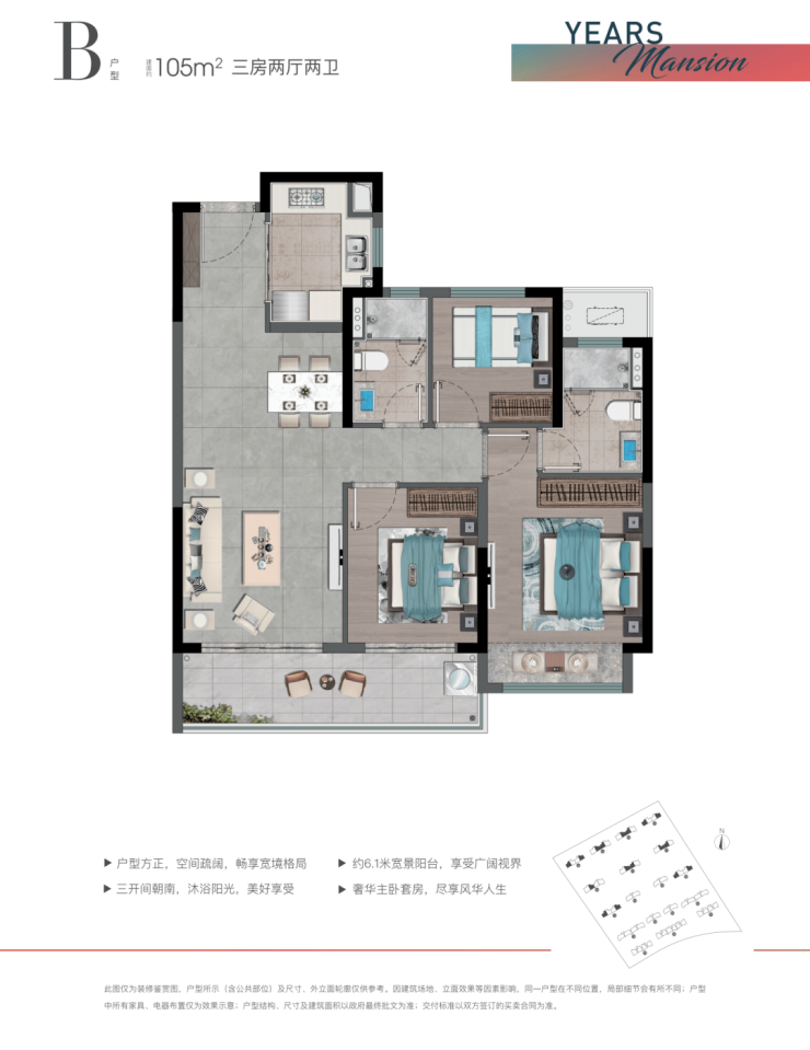 主力户型:精装现房,高层面积95-115㎡(三居)、洋房105-125㎡(三居/四居),全屋标配中央空调、新风系统