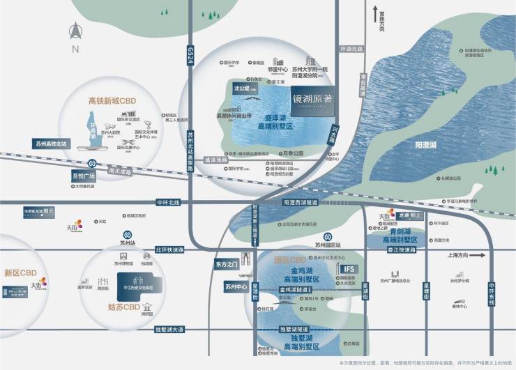自驾:紧邻苏州北站高架、苏台高速、常台高速,阳澄湖第三隧道(预计2025年完工)通车后可快速抵达苏州中心