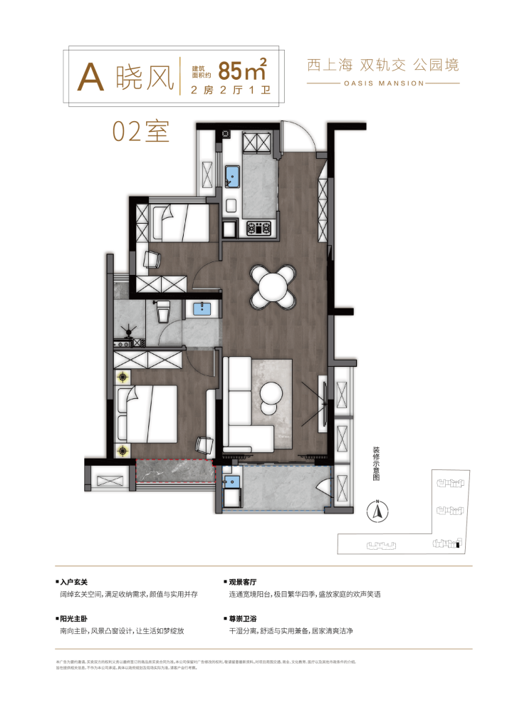 85㎡ 两室两厅一卫:总价约 118万起,南向采光,紧凑实用