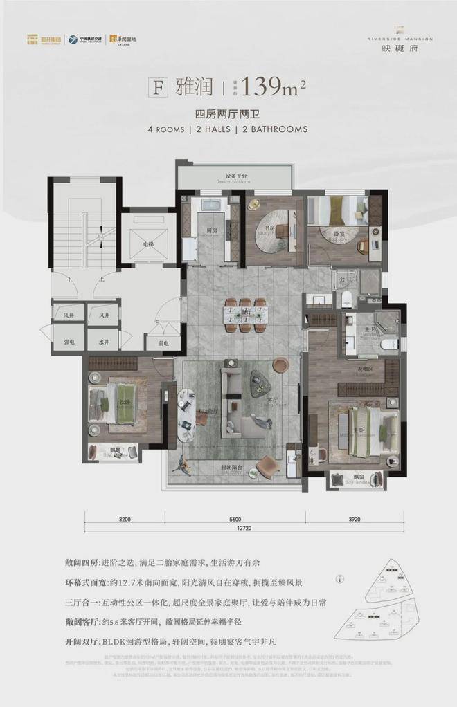 约139㎡户型亮点:约5.6米大宽厅+四叶草户型,超高实用率