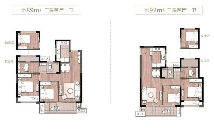 项目的最小户型为89㎡三房,总价约86万起
