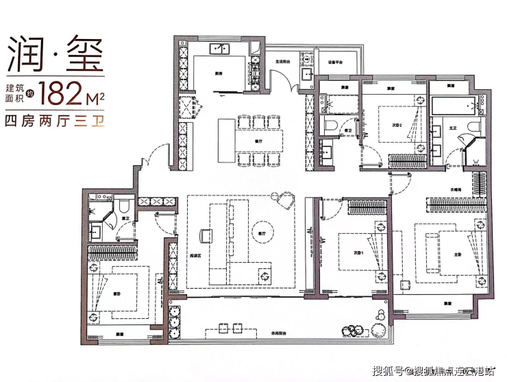 182㎡四室两厅三卫:总价约560–620万元,主卧带独立衣帽间+观景阳台,客厅通高3.15米,空间尺度优于市场普遍标准。