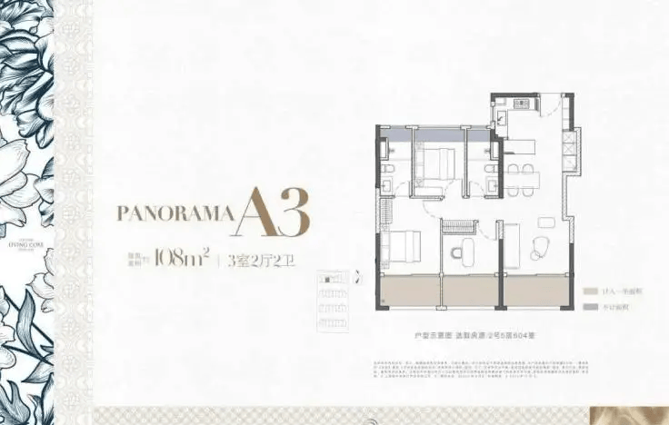 三开间朝南,南向总面宽达10.2米,三个功能分区阳台总面积10.08㎡,实得率高达87%,空间感等同市面约120㎡户型。