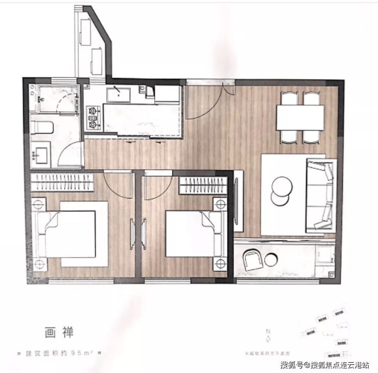 95㎡户型2室2厅1卫