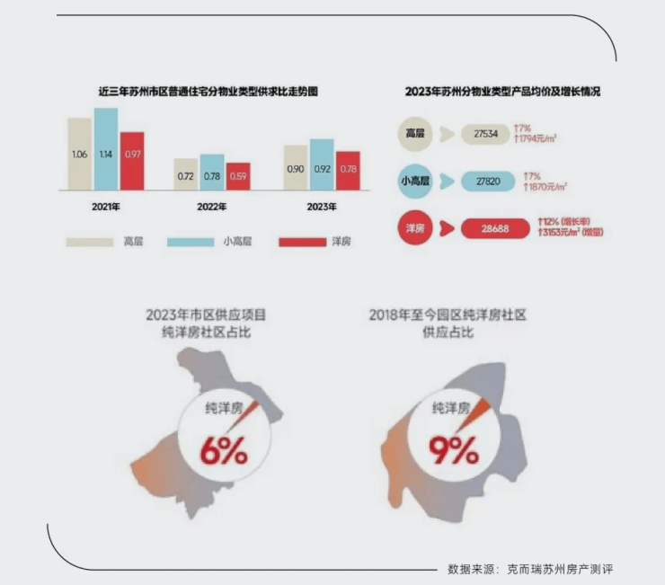 纯洋房作为板块唯一的纯洋房社区,稀缺性不言而喻。2023年,苏州纯洋房社区的供应比仅6%左右,其得房率、舒适度是高层产品不可比拟的。