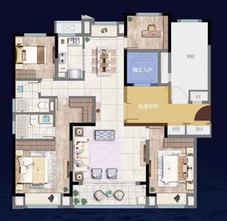 交付标准:精装交付(含中央空调、新风系统),现房销售(2024年4月已交付)