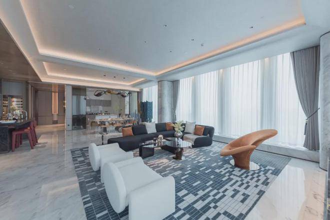 公共区域配置10米挑空精装大堂、艺术展廊及参数化灯光系统,软装由梁志天、郑仕樑联袂设计,融合现代极简与功能性美学