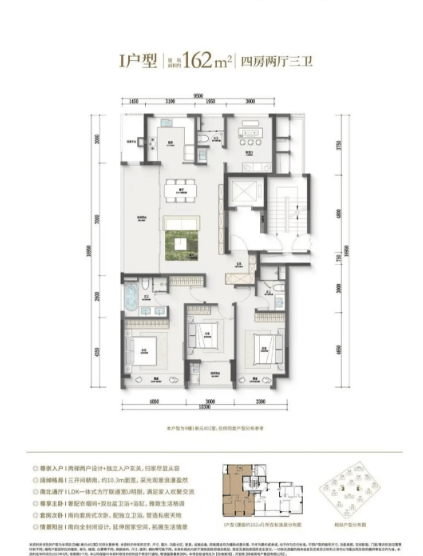 162-164㎡大平层:双主卧套房+270°转角阳台,全屋五重收纳系统,得房率高达88%,是高端改善的标杆。