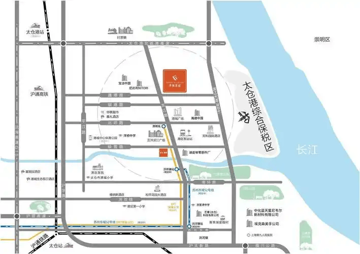 项目地处太仓港城核心区,属“一市双城三片区”城市布局中的副中心,紧邻滨江大道。