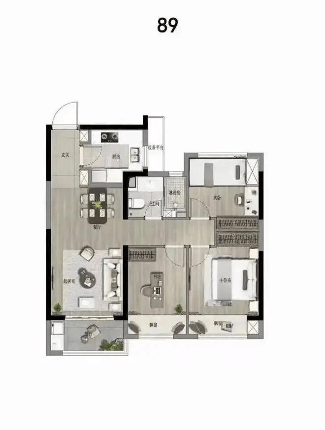 ↓建面89平3房2厅1卫: