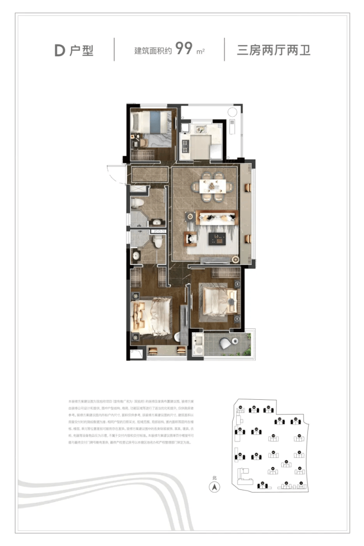 楼栋布局:点式楼设计,楼间距大,保障采光、通风与私密性