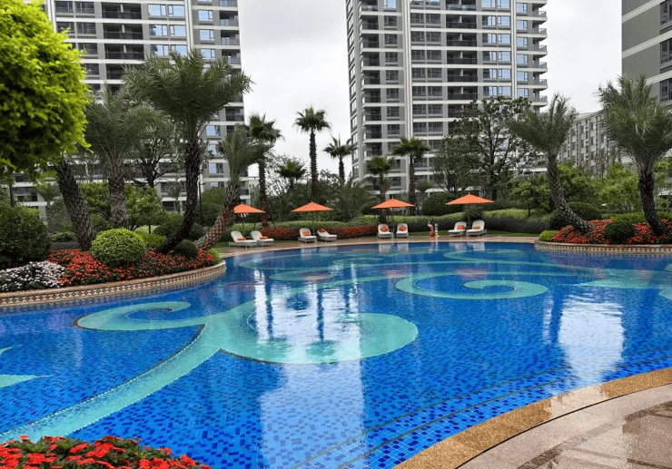 社区品质高:热带园林、蓝宝石泳池、高得房率、精装交付,产品力越级