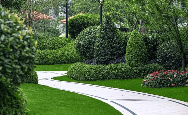 园林营造:三维堆坡、多品类花卉乔木,四季有景,实景呈现度高