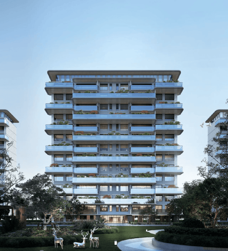 四代住宅设计:采用奇偶层错位布局,形成"空中双庭院",每户配置约52-88㎡空中花园(含露台及阳台面积),实现"高层中的别墅生活"。南向最大约13.9米巨幕露台,最大面宽约23.2米,享宽境南北庭院