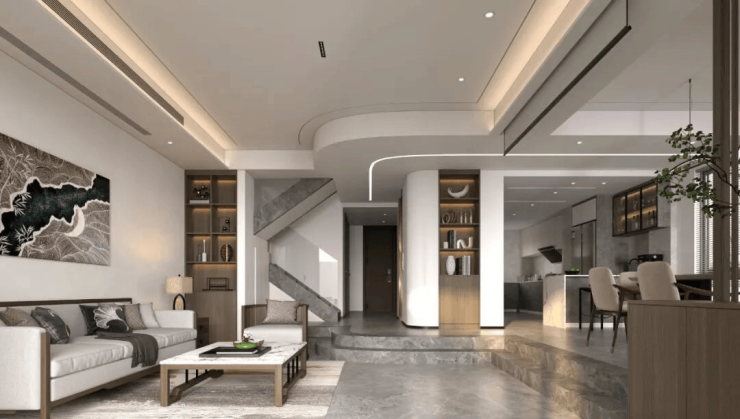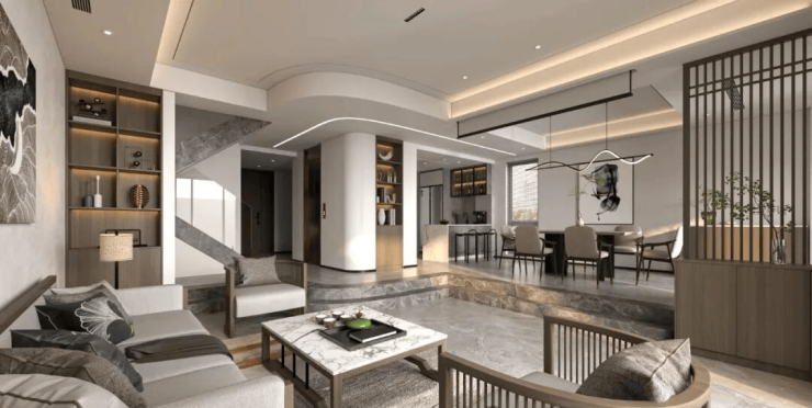 功能分区:上叠为顶层复式,下叠带独立庭院,实现动静分离