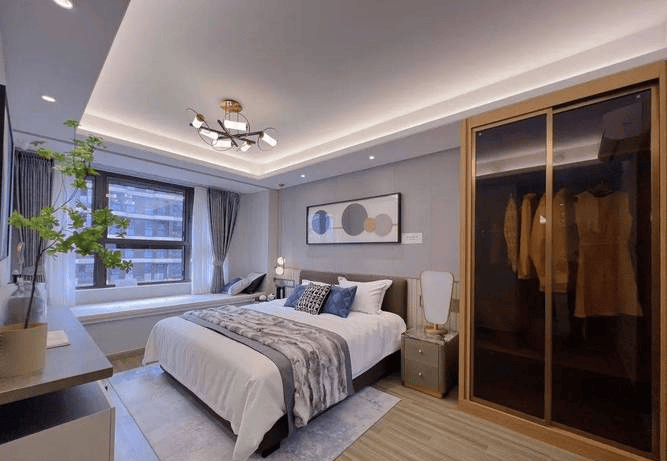 2.【舒卧】主卧套房设计,步入式衣帽间,飘窗弧形转角,自然之景共生互融;