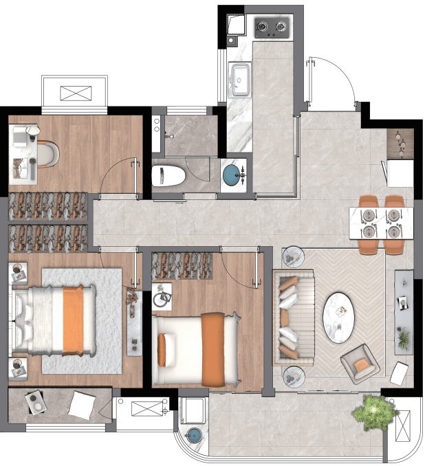 4.【舒卧】朝南双卧定制级人居体验,独立静雅书房格局,匹配高品质生活。
