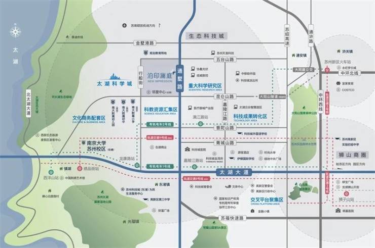 苏州泊印澜庭深度解析:太湖大道快速接驳中环,周边苏州科技城外国语学校林立,教育资源优越,打造品质人居!