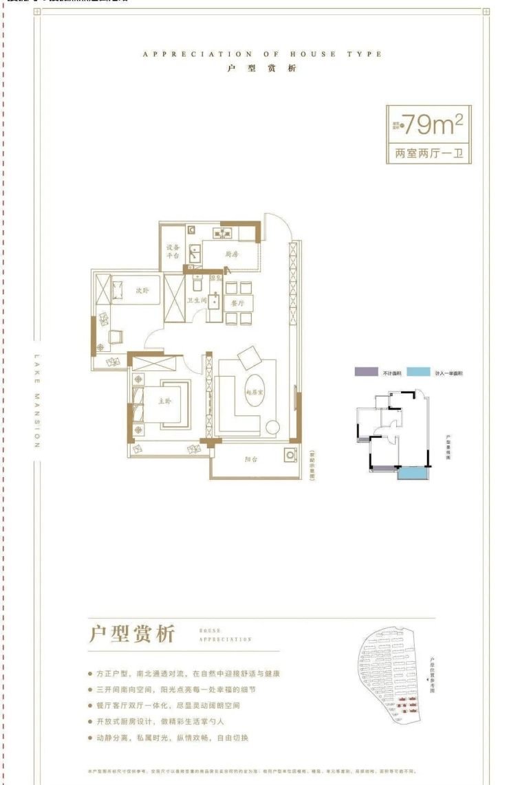 2、公寓:79平方米,5层,电梯配置,实用率82%;鲁能泰山9号公寓户型图