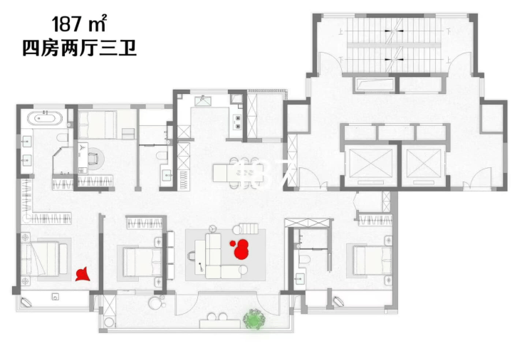 项目主打155㎡起纯大平层产品,户型涵盖155㎡、185㎡、242㎡四室两厅至三卫格局,无小户型,圈层纯粹,定位为苏州高新区改善型塔尖人居标杆。2026年初备案均价为51,200–53,800元/㎡,总价区间约799–1,239万元/套,为当前狮山板块内科技住宅价格高地。