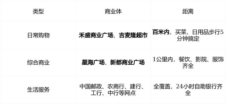 🛍️ 生活体验 :不用开车,拎包下楼就能满足吃喝购,真正实现“10分钟生活圈”。