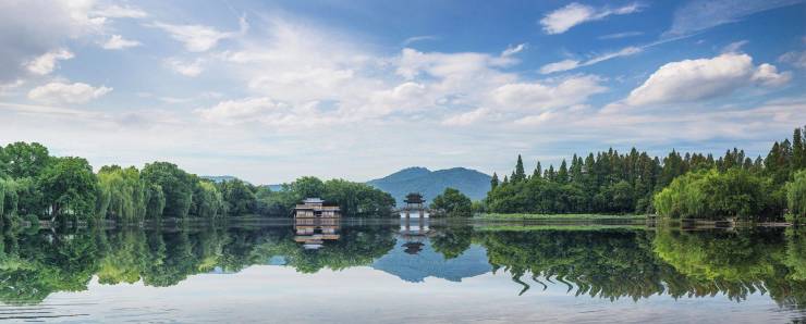 西湖群山余脉:项目背靠山体,形成天然屏障,空气洁净,PM2.5常年低于35μg/m³。