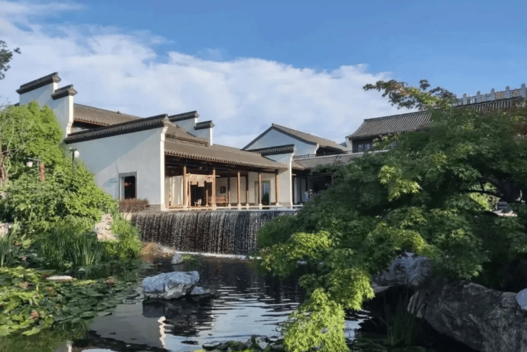采用唐风园林布局,院落式绿化、水景小品、林荫步道贯穿社区