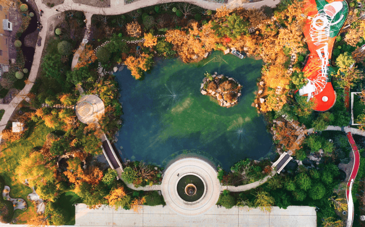 生态社区:绿化率超60%,规划“一心九轴”园林景观,包含1500㎡中心湖、百米樱花大道、下沉式绿地及屋顶花园,打造森林级居住体验。