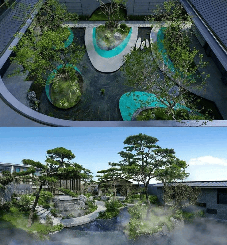 项目以虞门琴曲《潇湘水云》为灵感,打造"一纵三横七境十景"宋韵园林,将虞山十景融入社区景观