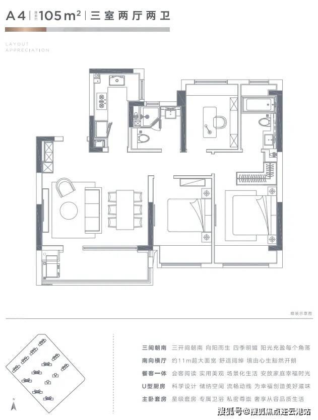 雅乐云庭主力户型包括建面约105㎡、125㎡、135㎡户型,每个户型在尺度和功能空间上都达到了极致。这些户型不仅空间布局合理,而且采光通风俱佳,充分考虑了居住的舒适度和实用性。