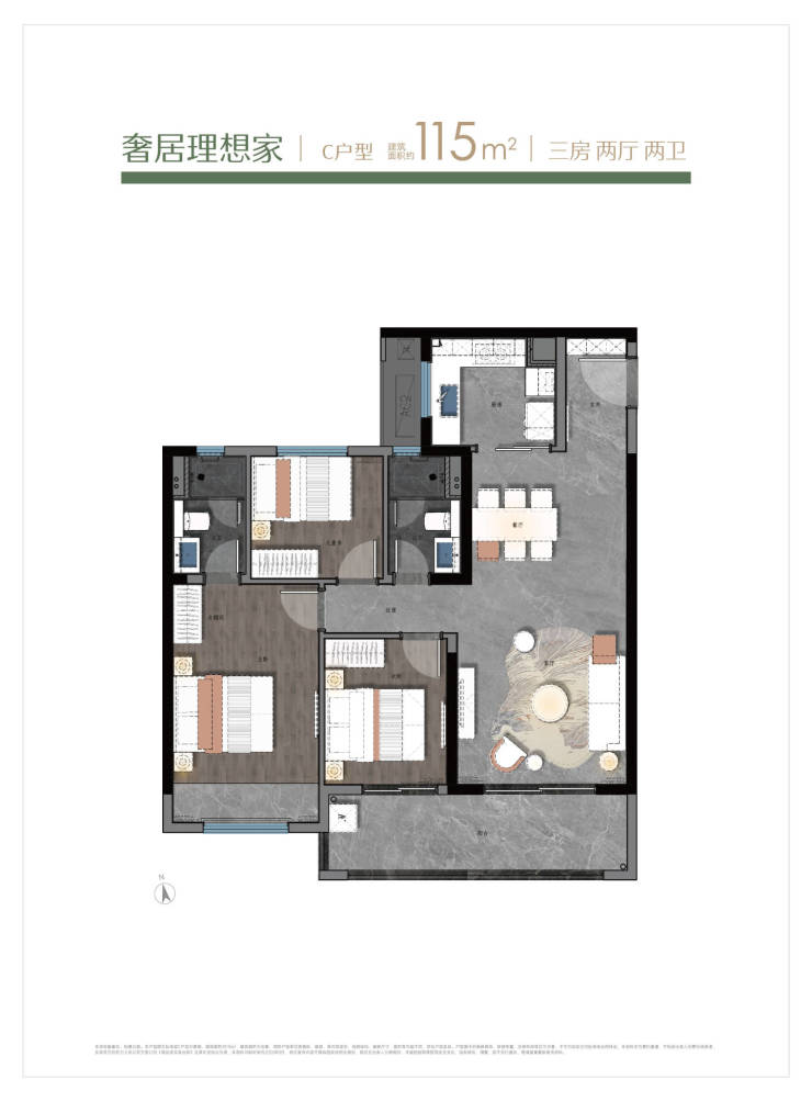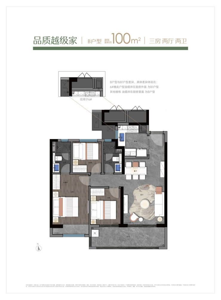 精装品质交付:项目全系户型采用精装交付标准,配备日立中央空调、菲斯曼地暖、兰舍新风系统,科勒卫浴等品牌建材,为业主省去装修烦恼,实现拎包入住。户型设计上,89㎡采用竖厅布局+U型厨房,115㎡楼王户型四开间朝南,全系户型南北通透,得房率最高达76%,空间利用率高。