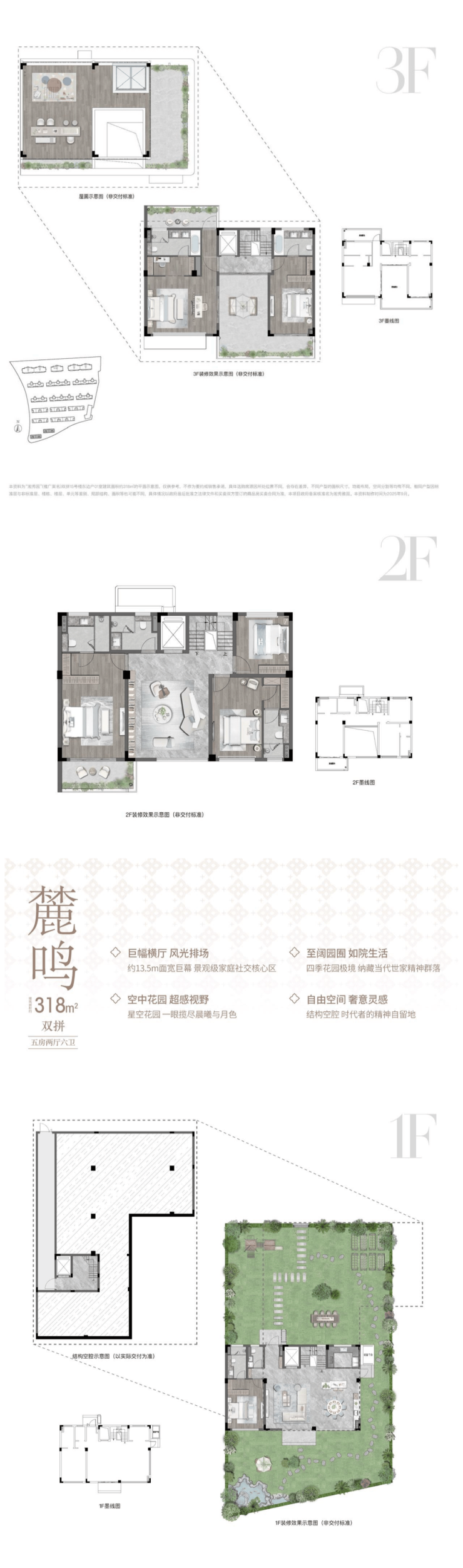 双拼别墅:约318㎡,六室三厅,终极改善之选,得房率超90%