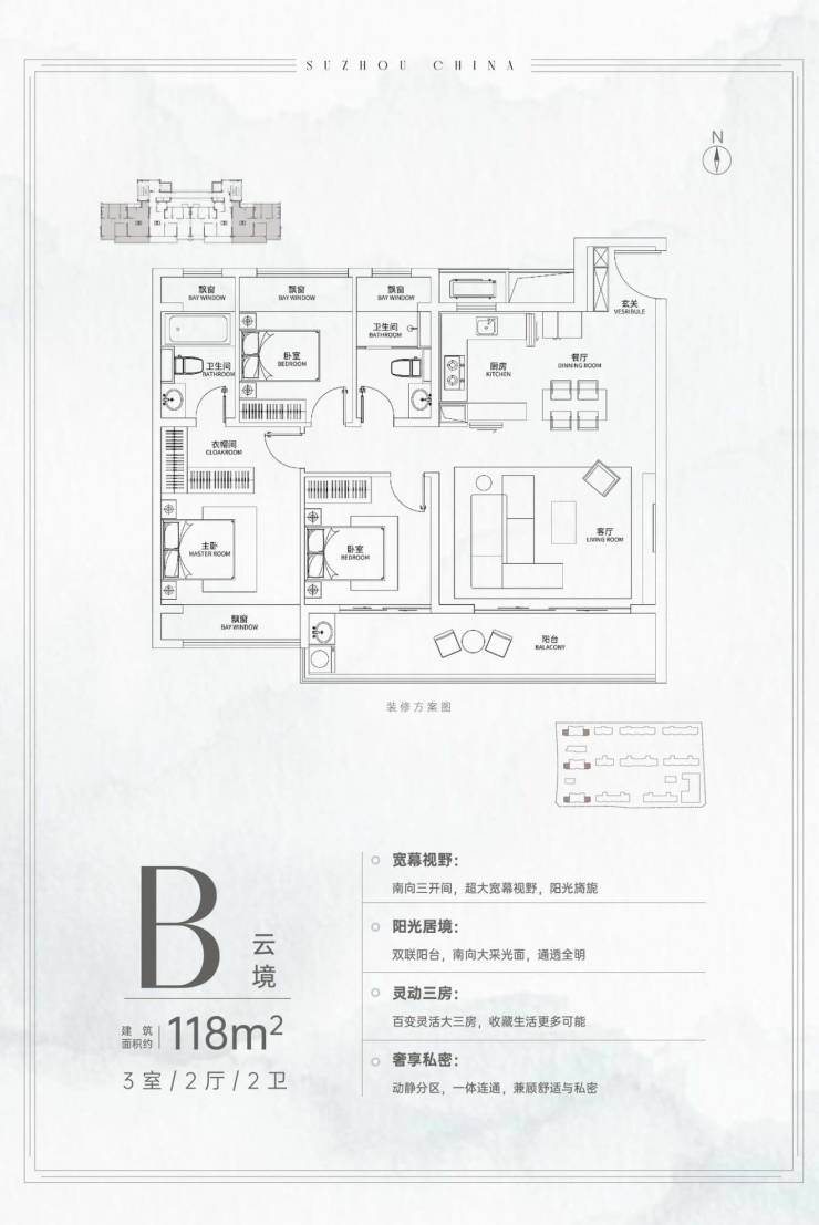 【建面118㎡3居】270.0-300.0万-分布于12 8 4 ,1梯2户,层高3.00米,总楼层24-26F