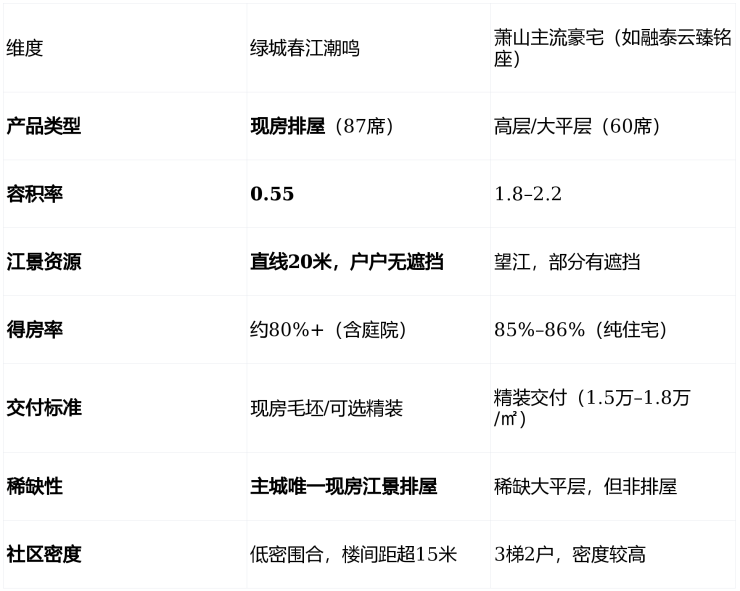 核心差异 :春江潮鸣不是“大平层升级版”,而是 主城稀缺性资产的重新定义 ——它用“ 江+山+院+现房 ”四重稀缺,构建了杭州改善市场无法复制的“ 收藏级标的 ”。