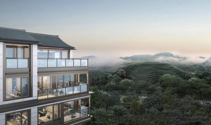 项目秉承宋式风雅美学,打造"茶山景观+宋式院墅"设计理念