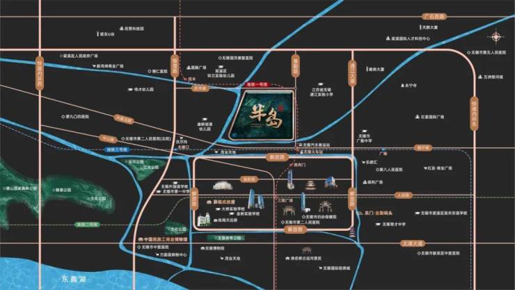 项目位于百年庆丰纱厂旧址,运河两条支流埝埭港、北兴塘交汇于此。周边拥有恒隆⼴场、八佰伴、大东方百货、T12、苏宁广场、三阳广场等高端商业集群;近地铁1号线民丰、无锡火车站,可快速接驳轨道交通网,贯通全城,高效通勤。