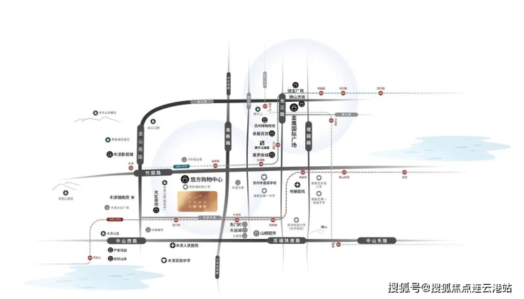 (1)立体交通——中环、南环快速路;地铁1号线、地铁5号线(约500m)在侧;约1km内覆盖12个公交车站,便捷交通体系,瞬时链接苏州全城。
