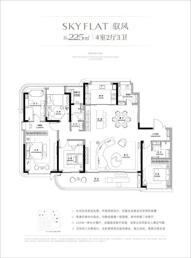 高层总高:21-24层的大平层,得房率76-82%,架空层4.5米,其他大平层层高3.15