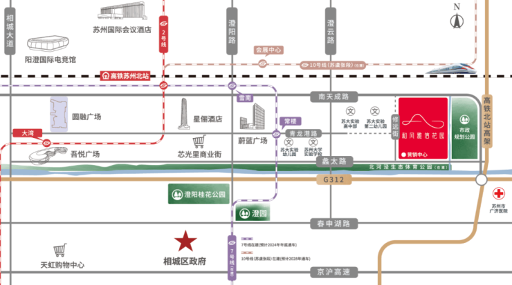临近地铁7号线常楼站(预计2024年底通车)、地铁2号线高铁苏州北站。