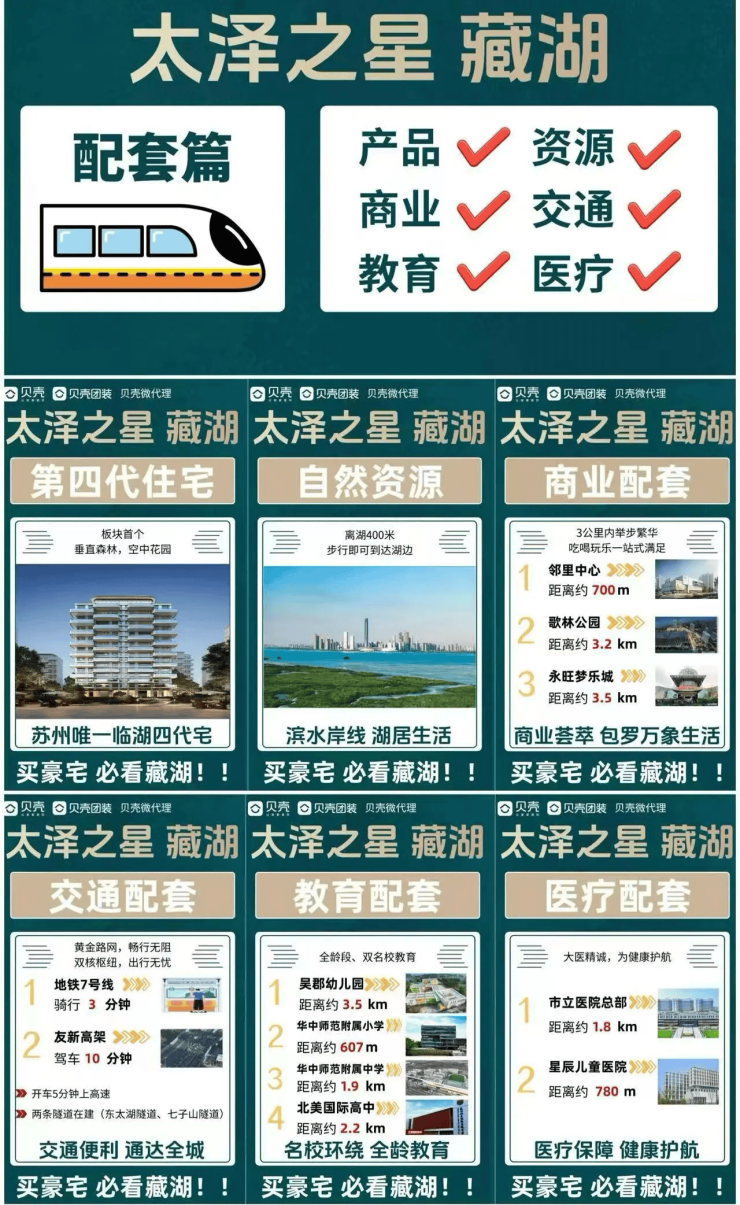 3公里范围内汇聚永旺梦乐城、歌林公园等百万方商业综合体,满足购物、娱乐、餐饮一站式需求;毗邻华中师大苏州湾实验中小学,优质教育资源护航成长;苏州市立医院总院为健康提供三甲级保障。地铁4号线木里站近在咫尺,规划7号线、东太湖隧道等立体交通,无缝衔接主城与长三角。400 998 3632太湖之星藏湖营销中心电话