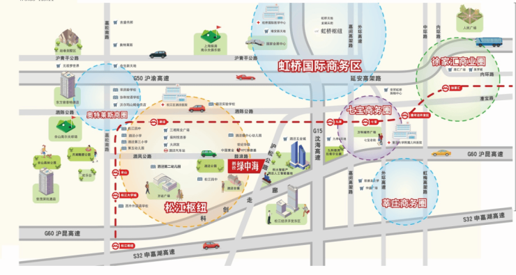 紧邻沪松公路、S20外环、G60沪昆高速5分钟上高架,15分钟达松江新城,25分钟达虹桥枢纽,40分钟达陆家嘴